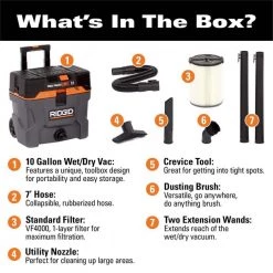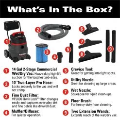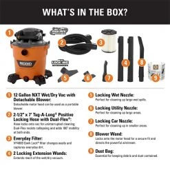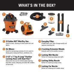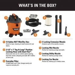 RIDGID 12 Gallon 5.0 Peak HP NXT Wet/Dry Shop Vacuum with Filter, Locking Hose and Accessories