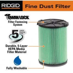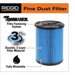 3-Layer Fine Dust Pleated Paper Filter for Most 5 Gallon and Larger RIDGID Wet/Dry Shop Vacuums