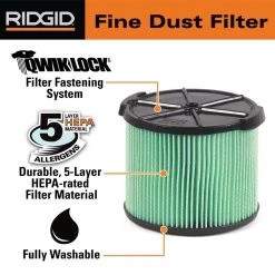 5-Layer HEPA Material Pleated Paper Filter for Most 5 Gallon and Larger RIDGID Wet/Dry Shop Vacuums