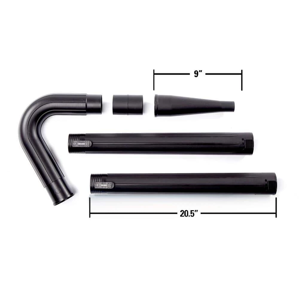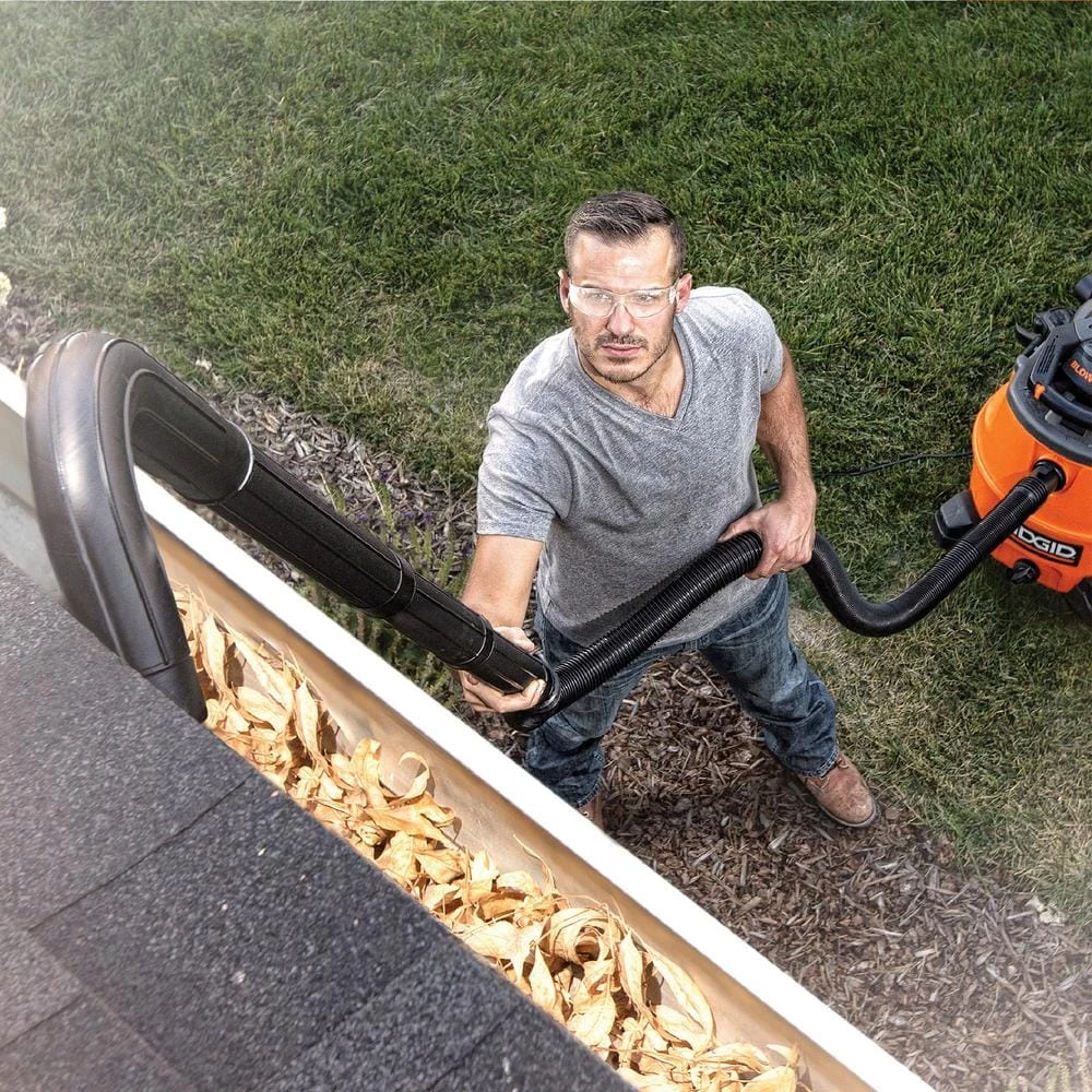 Kick your vacuum versatility up a notch with the RIDGID Wet/Dry Vac Gutter Cleaning Kit. This kit is a great accessory for any RIDGID vacuum with a 2-1/2 in. Dia hose. The gutter elbow is designed with a convenient angle for high-reach cleaning, helping you clean your gutters efficiently and make the most of your vac. This kit comes with attachments to use on both the vacuum function and blowing function. Kit includes 2 locking extension wands, a blower nozzle, a male-to-male adaptor, and an a gutter elbow.