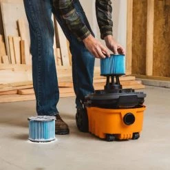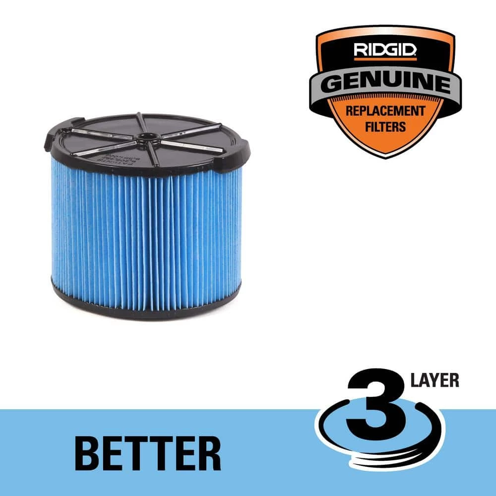 - You may also like – RIDGID standard filter (VF3400; sold separately) for general debris and dust and HEPA media filter (VF3600; sold separately) for drywall dust and allergens