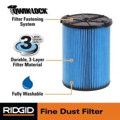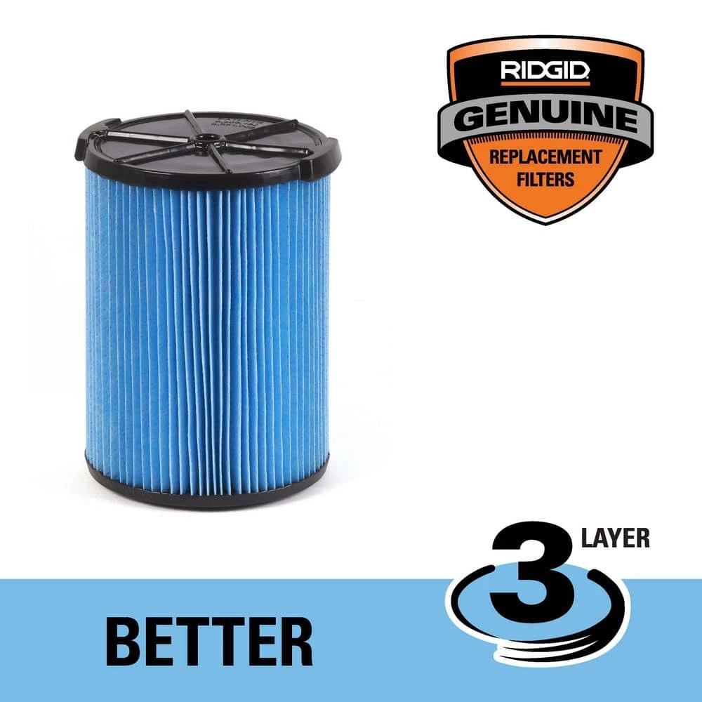 - Includes 1 RIDGID 3-Layer Fine Dust Wet/Dry Shop Vacuum Replacement Filter to help capture particles that could harm the motor and decrease performance – dry pickup only