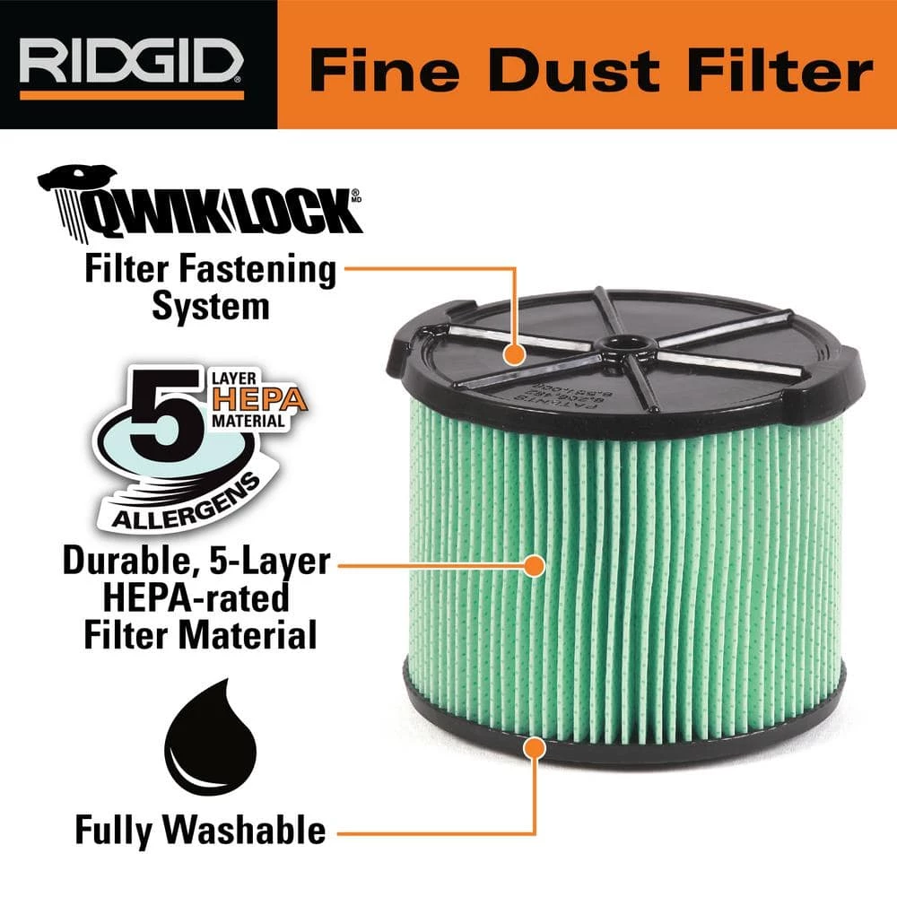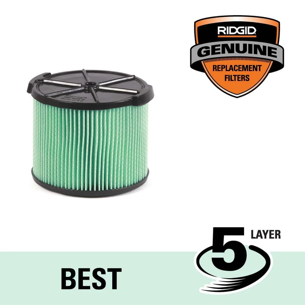 - 5-layer filter ideal for capturing allergens, pet dander and drywall dust when paired with a RIDGID Dust Collection Bag (VF3501; sold separately)
