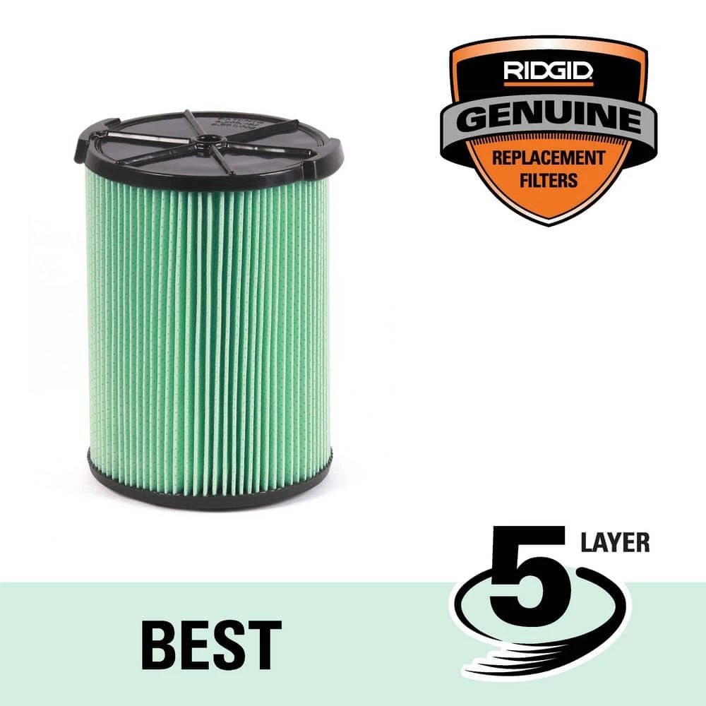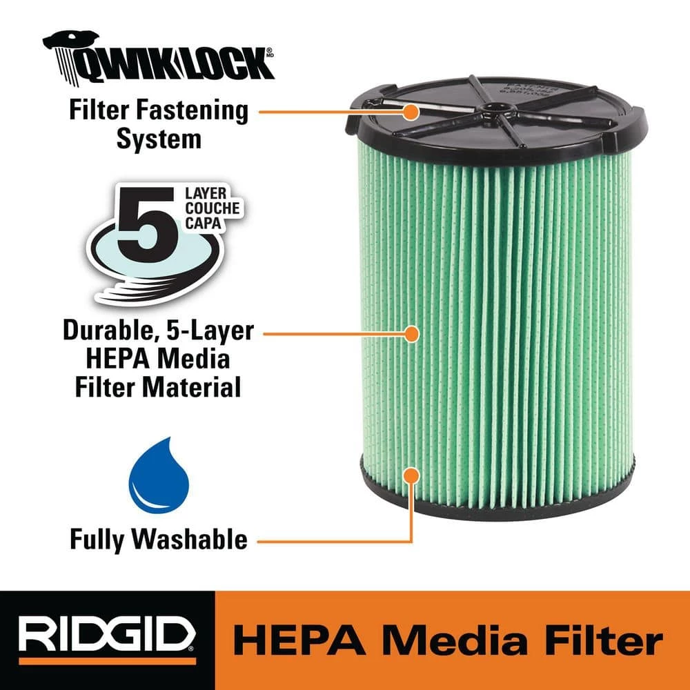 - Includes 1 RIDGID 5-Layer HEPA Media Wet/Dry Shop Vacuum Replacement Filter to help capture particles that could harm the motor and decrease performance – dry pickup only