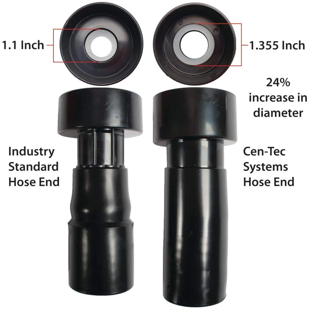Cen-Tec Systems 94192 is engineered to connect a wide range of major power tool brands to your home shop vacuum for recovery of the debris and dust generated during the use of the power tool, keeping you and your shop clean while protecting you from airborne particulate that can harm your health. The 94192 is designed to be versatile with 3 unique and tool industry typical connections. The inner collar with durable acetal clip connects directly to most brands of dry wall sanders and other tools generating high volumes of dust or having large debris profiles. A bayonet fitting with 1 in. soft TPE molded fitting is perfect for small power tool connections. The smooth 360° swivel rotation of the bayonet prevents the hose from kinking or resisting free movement of the power tool. Changing from the 1 in. fitting to a 1.50 in. soft TPE fitting popular on many chop saws and routers takes only a second using the quick clip system. An air relief is designed into the bayonet fitting to allow adjustment of the air stream at the tool as necessary to prevent tools sealing to the work surface. The 94192 offers a 1.25 in. x 16 ft. highly flexible commercial grade vacuum hose with smooth interior to prevent clogs and maximize air flow to the vacuum. The Cen-Tec proprietary shop vac connection is designed to maximize the opening from the hose into the vacuum to prevent clogs and improve airflow delivering the maximum performance from your vacuum.
