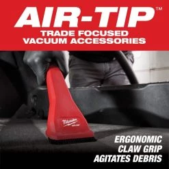 The MILWAUKEE AIR-TIP Claw Utility Nozzle makes handheld cleanup more effective with its ergonomic claw grip and integrated brushes that agitate debris. The claw grip design, combined with bristles on the nozzle end, gives the user more cleaning leverage to agitate debris. The bristles can also be used on finished areas to avoid marring the surface. The AIR-TIP Claw Utility Nozzle with Brushes is compatible with other wet/dry vacuum brands that include 1-1/4″, 1-7/8″, 2-1/2″ diameters, and is part of the AIR-TIP family of Trade Focused Vacuum Accessories.