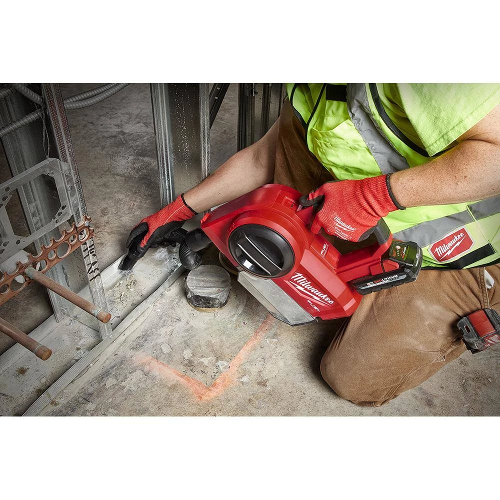 The Milwaukee M18 FUEL Compact Vacuum provides users with powerful performance and ultimate versatility to excel in small-area and spot clean-up applications on the jobsite. Armed with a POWERSTATE Brushless Motor and exclusive 2-stage debris separation, the compact shop vac is optimized for dry jobsite debris. The 2-stage debris separation divides small and large particles into the bagless canister prior to entering the filter. This delivers users with up to 50% more sustained suction versus the competition and more efficient clean-up. For maximum versatility, users can manipulate the portable vacuum’s orientation and quick-change accessories from upright use at ground level, waist level, or for use overhead. It comes fully equipped with an extension wand, powered floor tool, floor tool, flexible hose, crevice tool, utility tool, brush tool, accessory holder, HEPA filter, foam pre-filter, and 2 M18 6.0 Ah batteries (charger is NOT included).