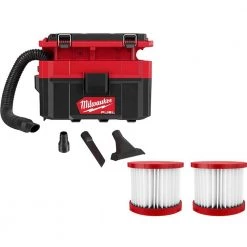 - Kit includes the 0970-20 Milwaukee M18 FUEL PACKOUT 2.5 Gal. wet/dry vacuum and two 49-90-1900 Milwaukee HEPA filters