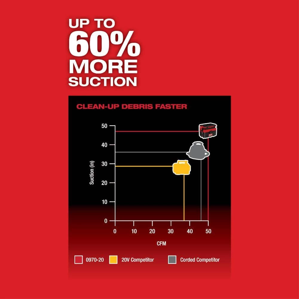 - 0970-20: 47 in. water lift: powerful suction for wet and dry applications