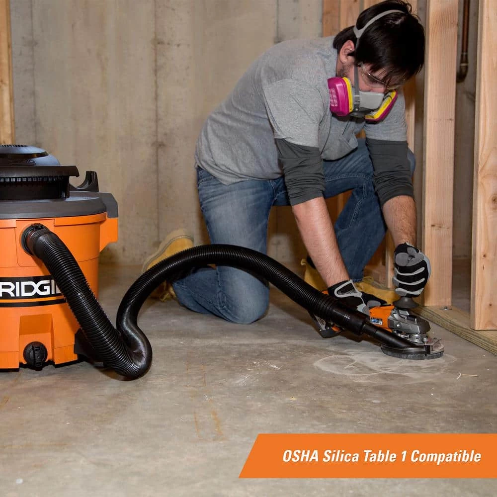 - For OSHA silica table 1 compatibility, employer/user must check the grinding wheel diameter when selecting a RIDGID wet/dry vac to ensure 25 CFM per inch of wheel diameter criteria is met