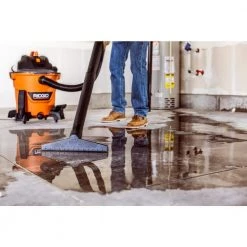 - RIDGID 12 Gal. wet/dry shop vacuum featuring a specialized RIDGID accessory kit with AM2265 mini-air mover