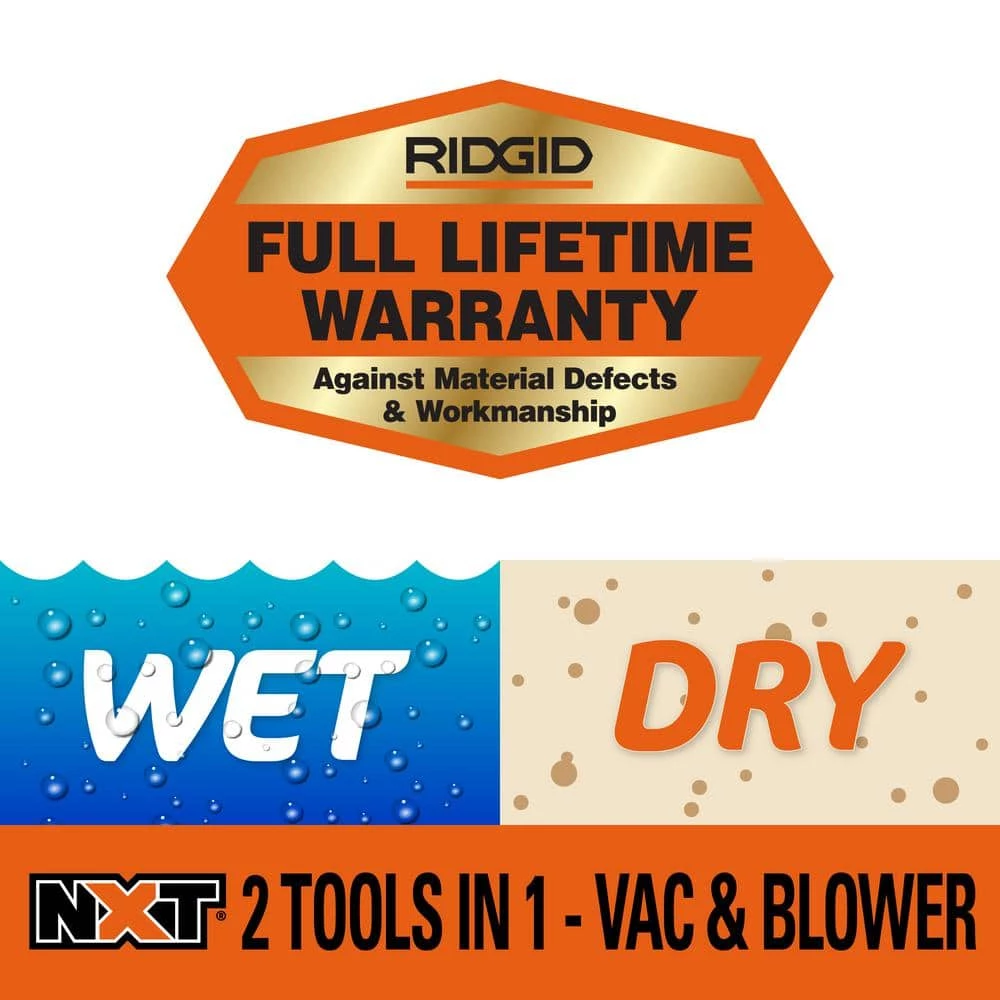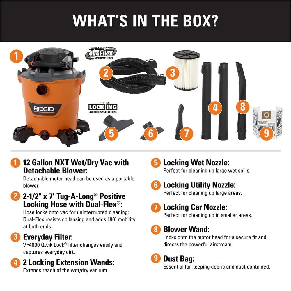 - Pair the RIDGID 12 Gallon NXT wet/dry vac with a dust collection bag for quick and easy disposal and to keep the drum clean