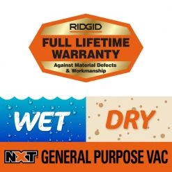 - Pair the RIDGID 16 Gallon NXT wet/dry vac with a dust collection bag (VF3502 Size A; sold separately) for quick and easy disposal and to keep the drum clean