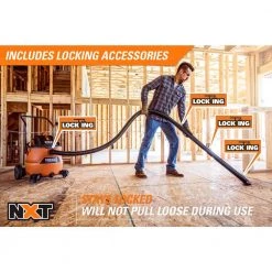 Part of the most powerful line of wet dry vacs RIDGID has ever made, the RIDGID 16 Gal. 6.5 Peak Horsepower NXT Wet/Dry Shop Vacuum was built with RIDGID’s most powerful horsepower motor, engineered for the pros with the toughest cleanups. This model includes a cart with large rear wheels, the fine dust filter (VF5000) to capture fine powders and debris and accessories to equip the pro for any job – 2 extension wands, a utility nozzle, car nozzle, wet nozzle, crevice tool and a muffler/diffuser. The drum offers maximum capacity at 16 gal. and the 2-piece drum construction provides lasting durability. Storage is readily available with hooks to store the hose and caster feet that fit both 1-7/8 in. and 2-1/2 in. accessories. The 2-1/2 in. locking shop vac accessories lock onto a wand or hose for uninterrupted cleaning. Use the utility nozzle for larger areas, the car nozzle for detailed cleaning and the crevice tool for tight spaces. For wet applications, attach the wet nozzle, for quieter operation, use the muffler/diffuser accessory and for extended reach, use the 2 extension wands. Large power switch, bottom drum handles and built-in drain upgrades the vac. The Qwik Lock Filter makes installing or removing your filter quick, easy, and secure. Pro Tip: Add a replacement RIDGID shop vac filter (sold separately) to a RIDGID shop vac to maintain the power of the vac and extend vacuum life and a dust collection bag (sold separately) to help with quick cleanup and disposal.