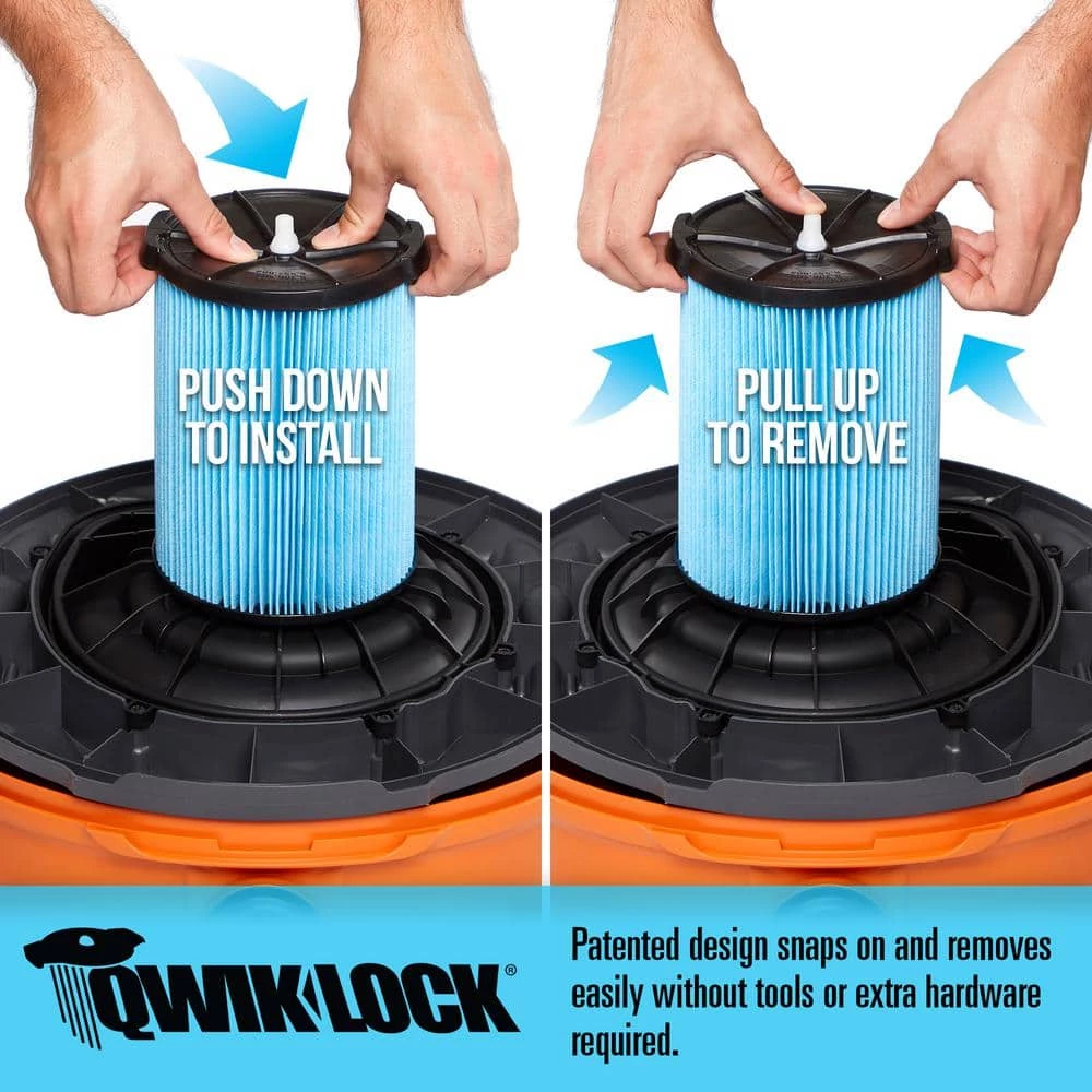 - Filtration includes the fine dust filter (VF5000) for fine dust particles such as dust mites, mold, and cold ash and the Qwik Lock filter snaps on or off the wet/dry shop vac for easy cleaning