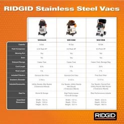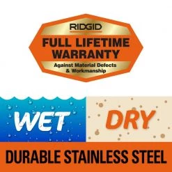 Take on projects confidently with the 16 Gallon Stainless Steel RIDGID Wet/Dry Shop Vacuum featuring a specialized RIDGID shop vac accessory kit for precision cleaning. The RIDGID stainless steel shop vac attachments (Dual-Flex hose, wet nozzle, utility nozzle, car nozzle, crevice tool and extension wands) included with this 16 gallon wet/dry shop vac together deliver powerful suction, large capacity, rugged construction, unique features and excellent mobility that pros demand for a jobsite or the shop. The 2 extension wands extend the overall reach for hard-to-get-to places, the locking hose with Dual-Flex offers uninterrupted cleaning through its unique locking technology and the utility nozzle is perfect for cleaning up large areas. When you need more intricate cleaning options for smaller areas, the car nozzle will do the job while the durable crevice tool tackles hard-to-reach places like in-between car seats. Wet mess? No problem. The wet nozzle attachment is designed to squeegee liquid cleanups so you can handle your next project with ease. All these accessories can then be attached to the included 16 gallon wet/dry vacuum with the unique locking technology for a secure connection and stored in the built-in accessory storage area. Moving up and down steps or across rough terrain is a snap with the large fixed rear wheels and cart handle, which includes a quick release design for easy emptying.