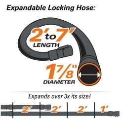 - 1-7/8 in. expandable locking hose expands from 2 ft. to 7 ft. for maximum reach and features a variable suction valve to adjust cleaning power
