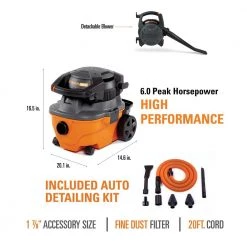 - 6.0-peak horsepower motor for powerful performance for heavy-duty cleanup