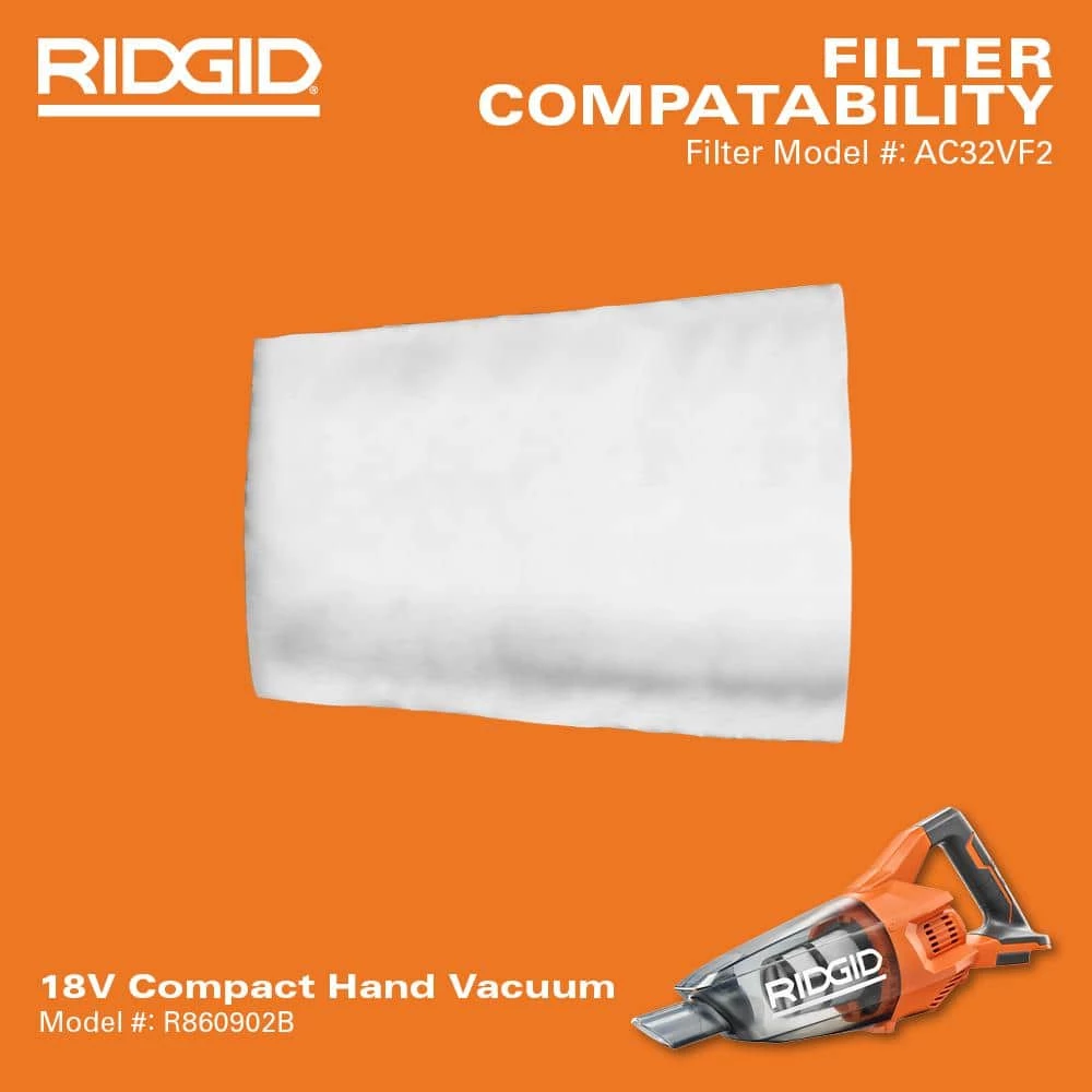 - Filter fits the RIDGID 18V Compact Hand Vacuum R860902