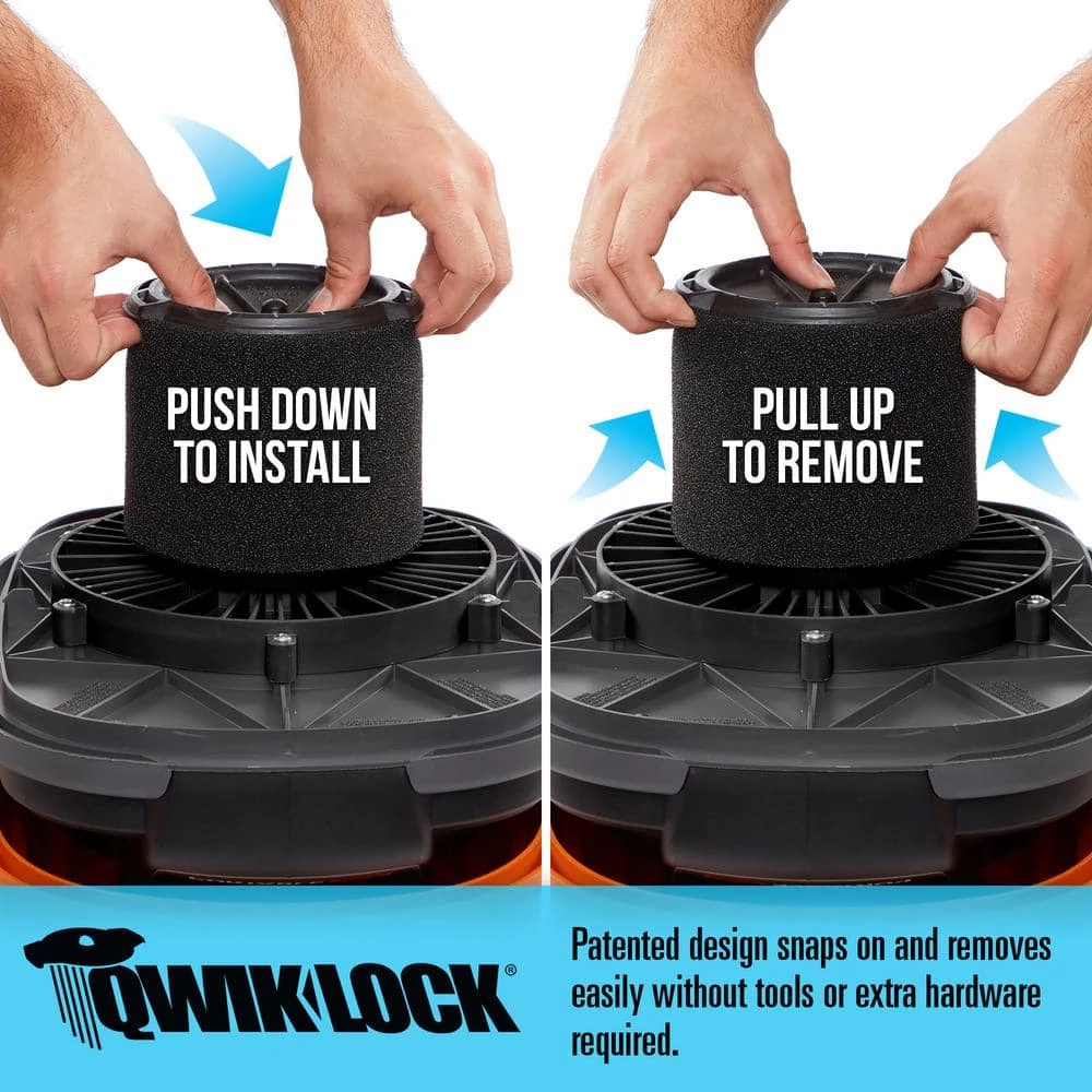 - Patented Qwik Lock filter makes installing or removing your shop vac filter quick, easy, and secure – no tools or hardware needed