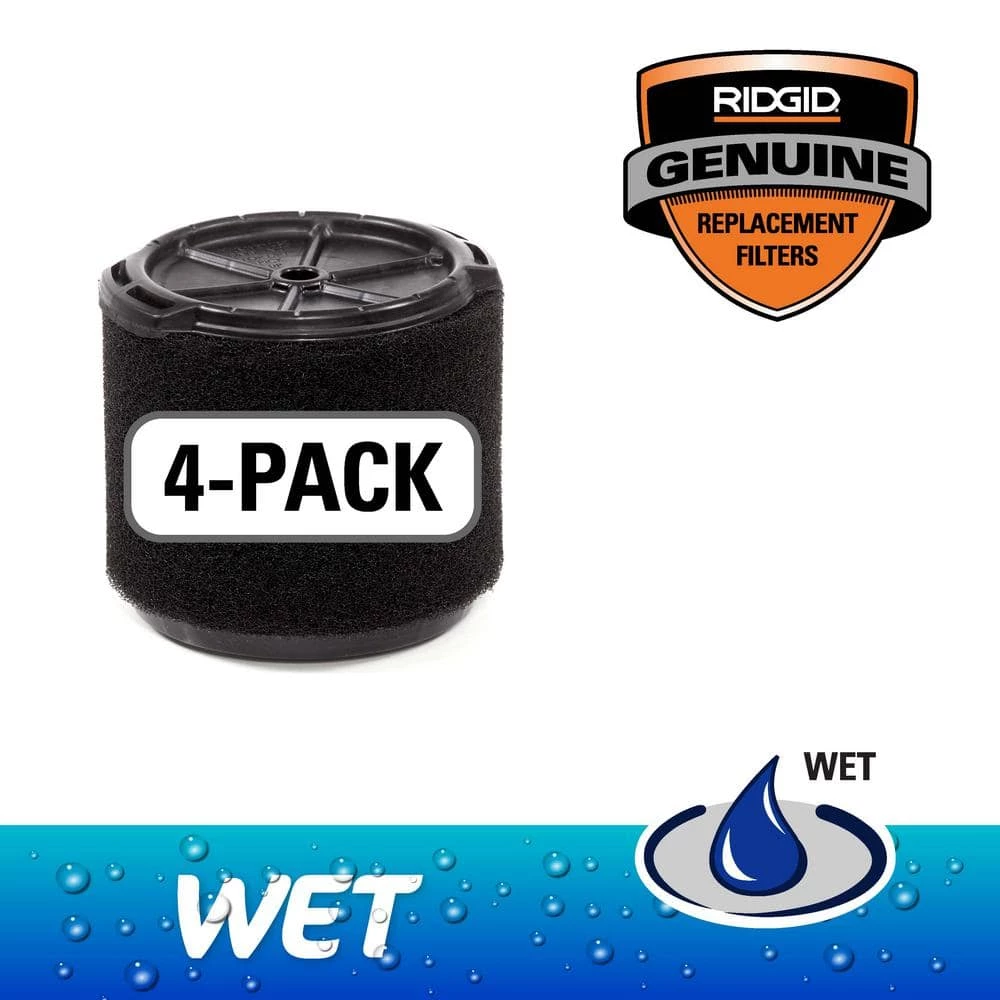 - Includes 4 RIDGID Wet Application Foam Wet/Dry Shop Vacuum Replacement Filters for frequent usage of wet messes